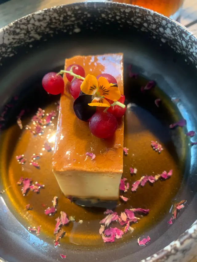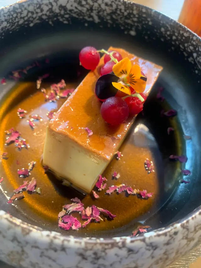 甜點:法式焦糖布甸非常精美,甜品上灑上碎花瓣,加點小裝置,十分貴氣!