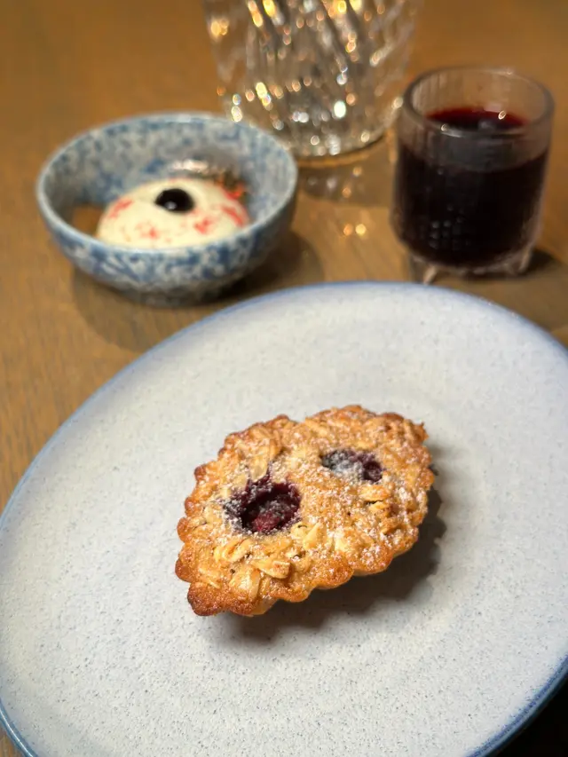 藍莓杏仁批,外層烤至金黃香脆,內裡柔軟,燕麥脆屑,香脆可口,增添了咀嚼感,藍莓帶來清新果香和自然的甜味