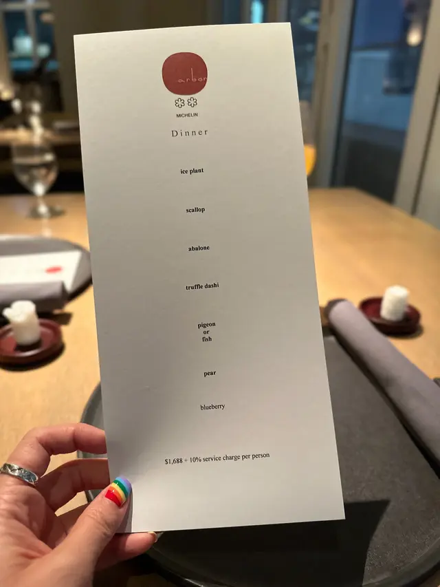 今晚,我們將品嚐餐廳的六道菜晚餐,每一道菜都展現了主廚對食材的尊重和對料理的熱情。讓我們一起踏上這場北歐風味的美食之旅,感受Arbor帶來的驚喜!