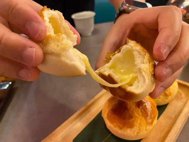 麵包煙韌圓潤,入面奶黃超級流心,熱騰騰食落香甜味濃。