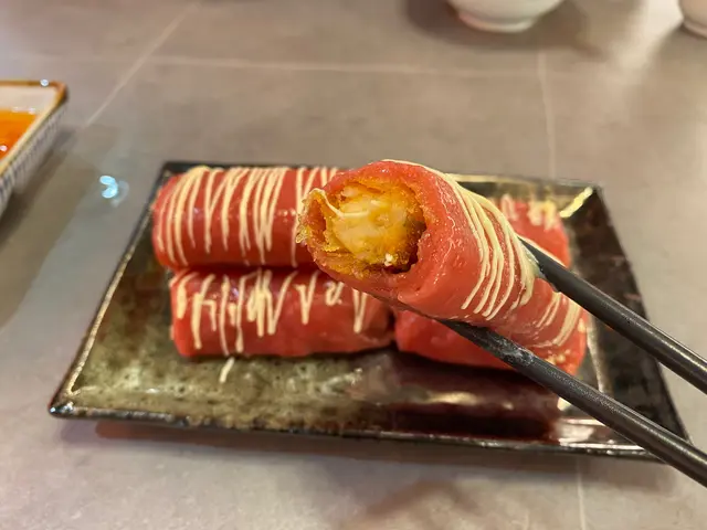 紅米腸粉入面係香脆嘅炸蝦什菜卷,咬落口感層次豐富,味道唔會咸。