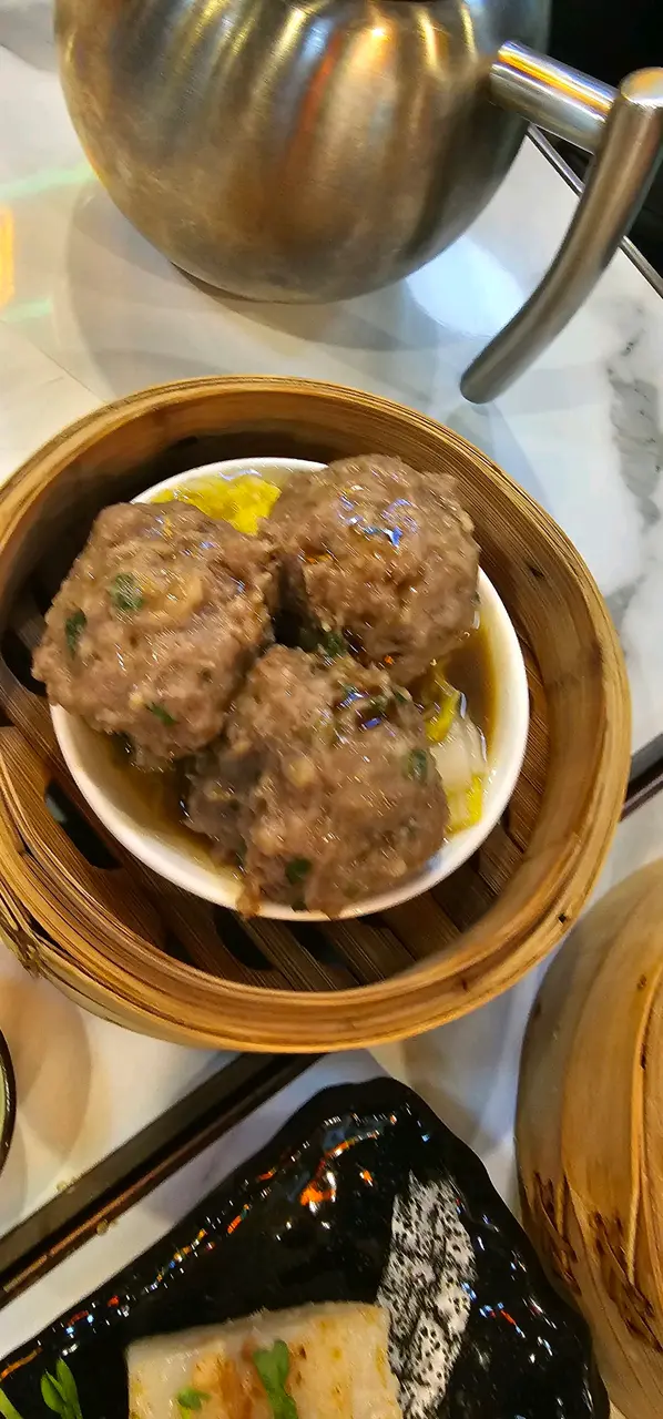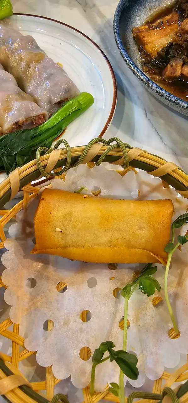 荃灣區有不少吃點心的專門點,近日在南豐紗廠意外發現有一間,所以去試吓。首先坐位寬闊,衞生環境不錯。我們點了幾款點心,包括筍尖蝦餃、麻辣叉燒包、叉燒腸粉、鮮蝦春卷、香煎蘿蔔糕、三色燒賣、陳皮牛肉球及梅菜扣肉飯。本人推介「麻辣叉燒包」,麵包外皮鬆軟,餡料豐富,有麻辣香味之餘又不會太辣,但一籠只得兩個,相對較少。另外,梅菜扣肉飯也值得一試,扣肉炆得軟綿綿,連瘦肉位置也軟滑,肥肉位置亦很香,配合甜甜的梅菜真是一流