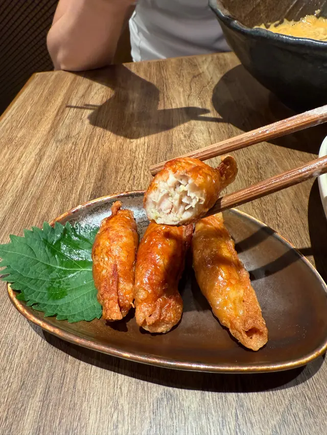 小食叫咗雞皮餃子 + 黑酢伴炸雞