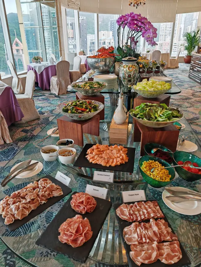 自助餐食物選擇豐富,有沙律🥗、芝士盤、新鮮水果🍍🍉🍓、甜品區🍮🍰🎂,意粉區🍛主菜還會慢慢逐一出爐以供選擇,可以慢慢享受。
