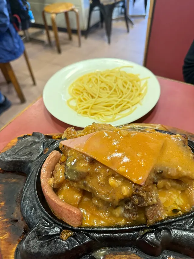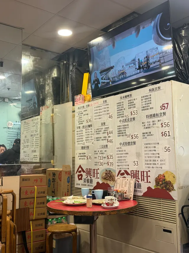 今日星期日終於等到好時機,去完行美荷樓,就走去食合興旺,睇地圖原來非常近!合興旺店舖細細,但全場爆滿,好多街坊都來食嘢,亦都有好似我咁第一次捧場!兩個人叫了個椒鹽豬扒炒飯同埋什扒配意粉,每個餐都湯同飲品,想試晒中湯同西湯,所以兩種都叫齊!