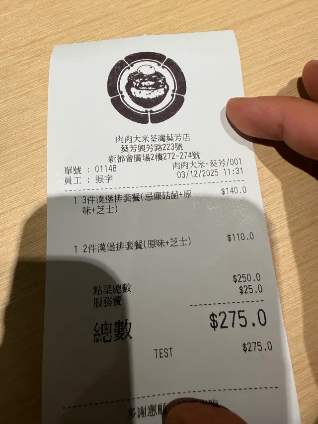 💰 消費:HKD 275