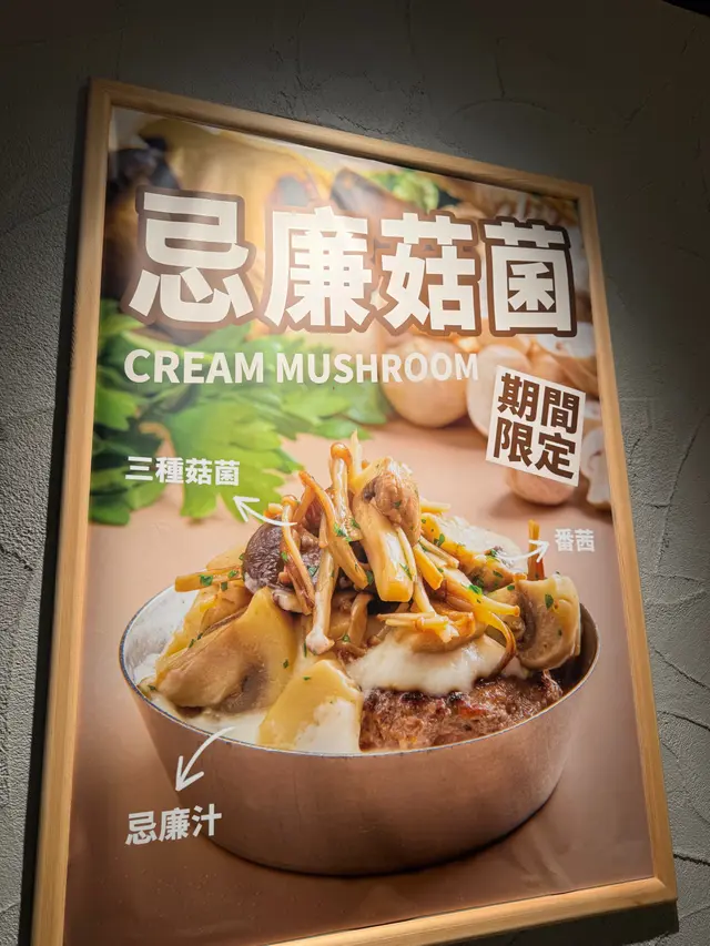 忌廉菇菌漢堡排:表面煎香後淋滿濃白忌廉野菌醬,雜菇+牛油香氣爆棚,一刀切開熱辣辣菇醬流出,邪惡到犯規!