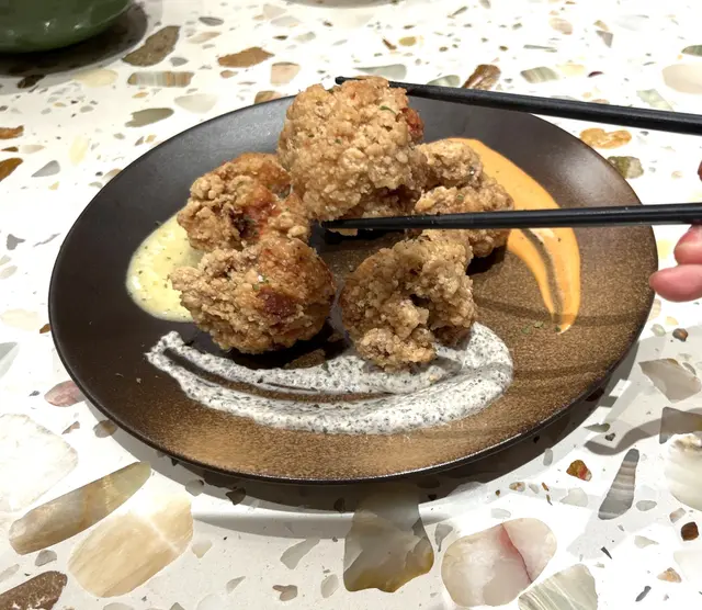 臺灣菜必食, 三色鹽酥雞 ~ 三色醬分別係柚子, 松露, 水牛城醬. 有酸爽又有辣味, 自由選擇.