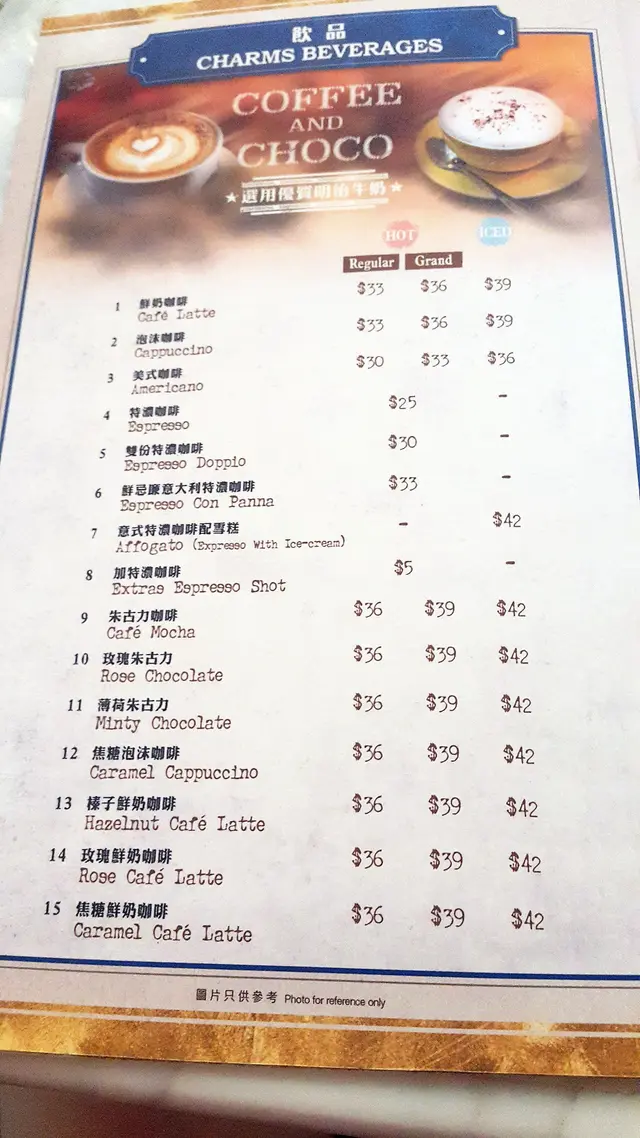 飲品方面除了咖啡之外,更有供應花茶、汽水、沙冰、蜜桃茶等等.....選擇都好大眾化。