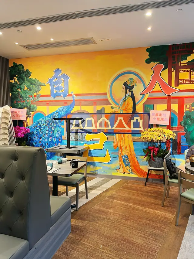 店內環境寬敞舒適,裝潢以型格的灰色為主調,有特大的卡位,牆身畫上中式壁畫,適合多人聚會。