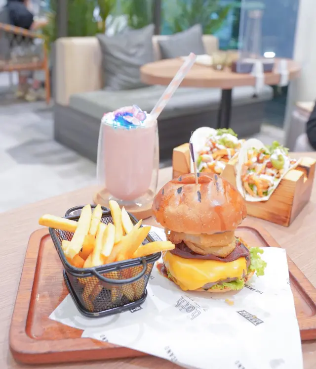 有別於一般美式漢堡包店,依間餐廳設計走田園風,到處擺滿植物裝飾,配上木系裝潢,仿如外國既後院~環境開揚舒適,空間感十足,窗邊位採用落地大玻璃,樓底亦較高,更設有梳化位置,休閒又有格調~