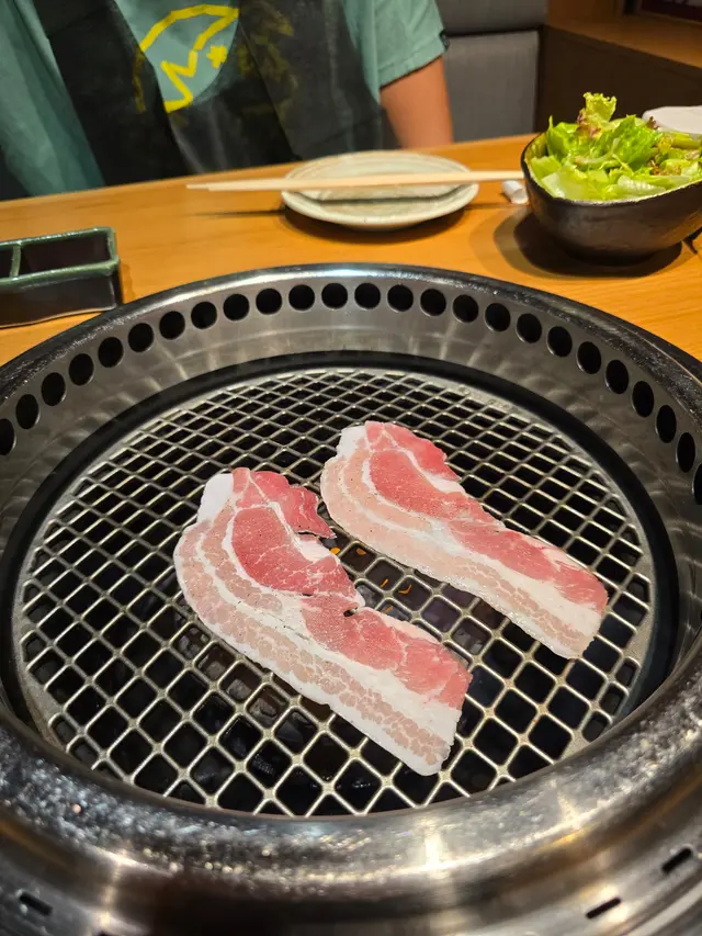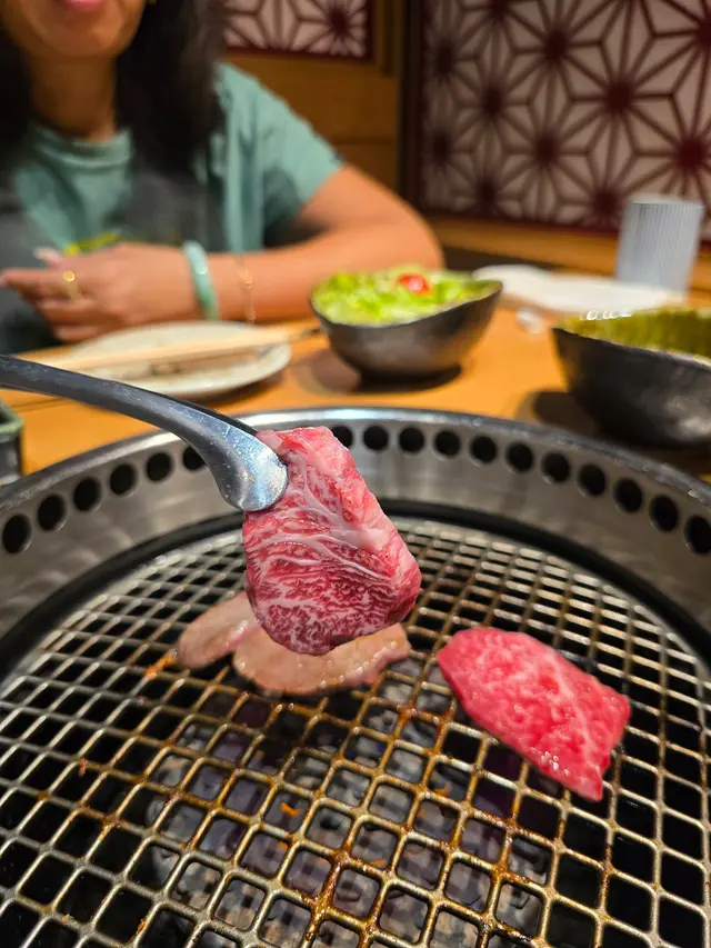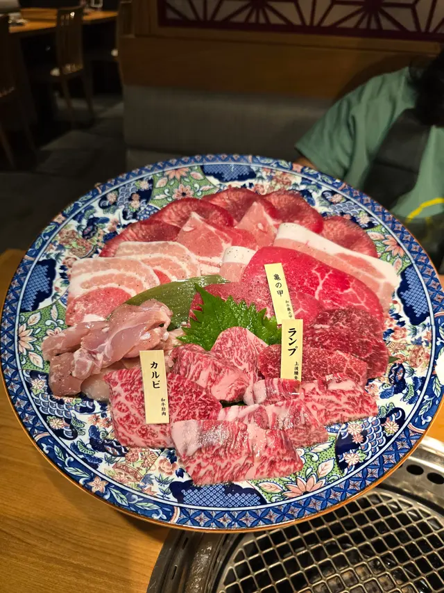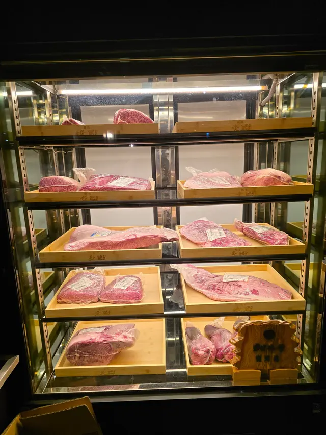 牛肉分別有和牛肋肉、上後腰脊肉及稀有部位和牛龜之甲等。牛肋肉油脂分佈平均,食落較香口;和牛龜之甲屬於赤身肉,油脂較少,肉味較濃。另外加了一份上等牛舌,肉質爽口。