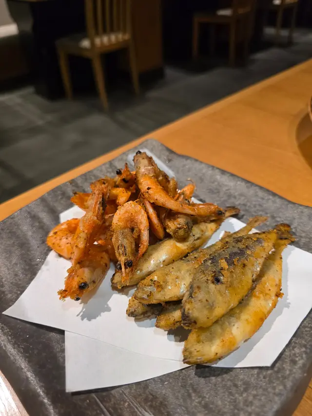 另外還點了炸池魚及炸甜蝦,兩款都大大隻,用黎送酒一流。