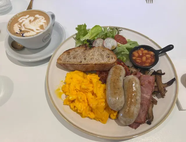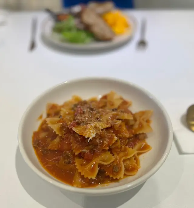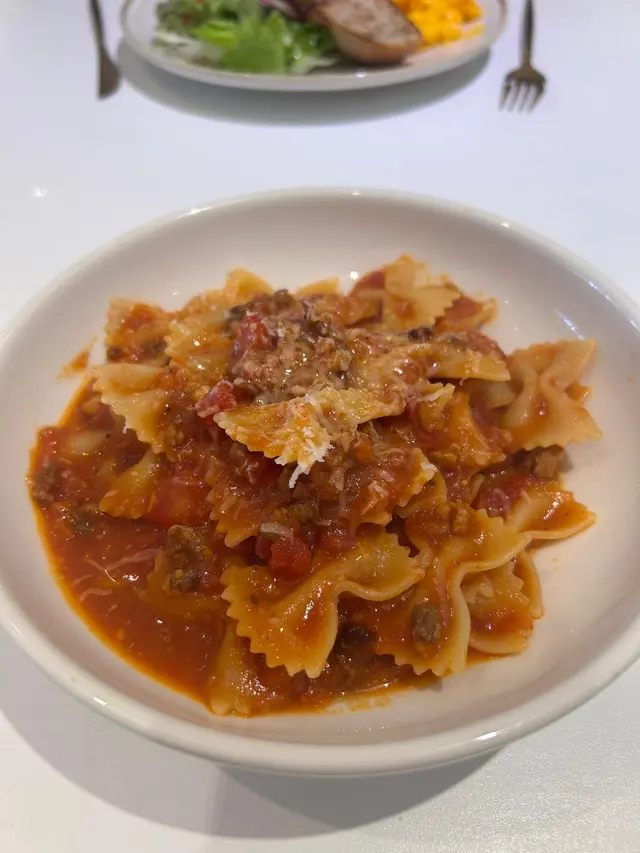 All day breakfast 夠哂大份,有煎腸、煙肉、炒蛋、炒菇、茄汁豆、沙律菜同兩塊多士~佢個炒蛋炒得好滑!好好食!配埋多士食簡直一流😋😋👍🏻蝴蝶粉亦都好掛汁,蕃茄汁配上牛肉碎真係好開胃😋食到舔舔脷~~
