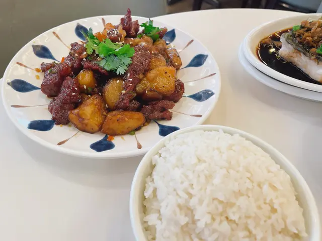 🕹 梅菜蒸鯇魚+白飯………📀超級大碟,魚肉口感獨特,而且梅菜味香濃。🕹 黑椒蜂蜜脆薯牛柳粒 📀……….我原本以為會好重黑椒味,點知完全唔會,仲有香甜蜂蜜嘅滋味,牛柳粒炒得好香,搞到我好想再食!