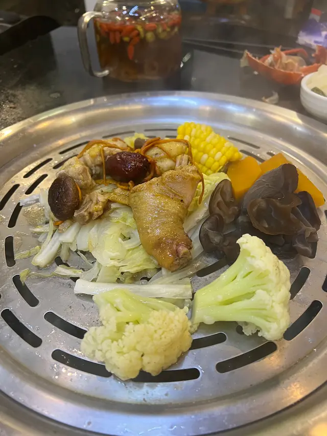 雞件啖啖肉,用蟲草花冬菇紅棗蒸,好滋潤同養生,南瓜粟米吸收了雞油,香甜之餘有油香味。