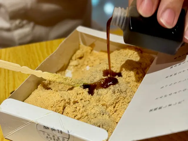 原味蕨餅沾滿香濃黃豆粉, 較清香, 吃時加點沖繩黑蜜, 十分滋味~