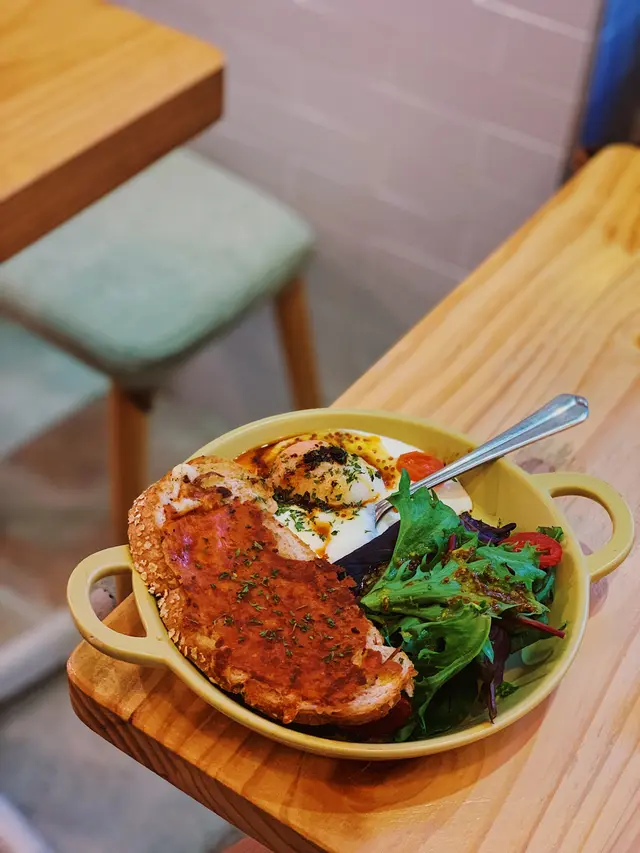 ❶慢煮蛋乳酪配烤芝士麵包 120HKD