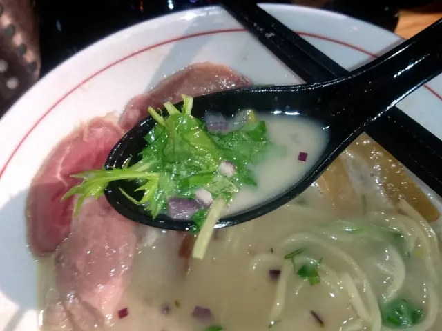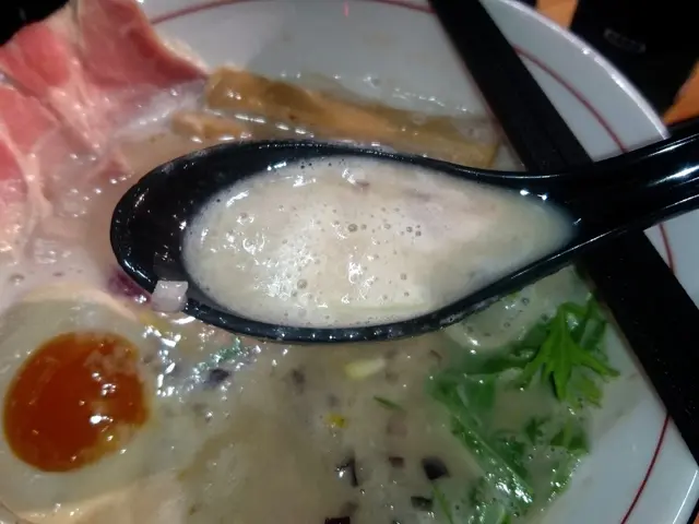 先輕呷一口湯,柚子泡沫確實能令濃厚的豬骨湯底帶來一點清新,但是並不持久;因此吃到後期時柚子味幾近全無,後勁不繼。