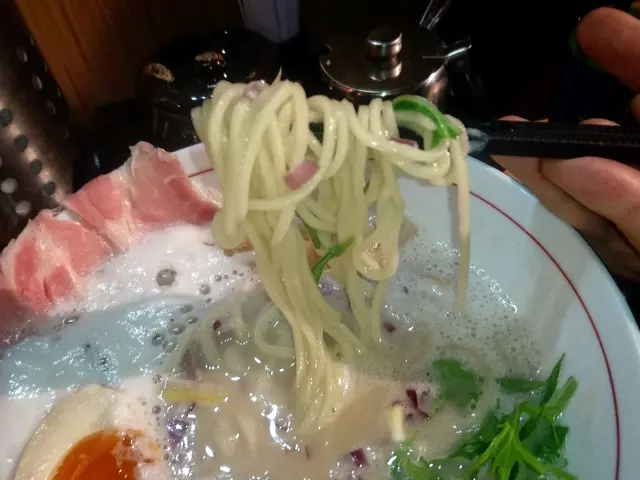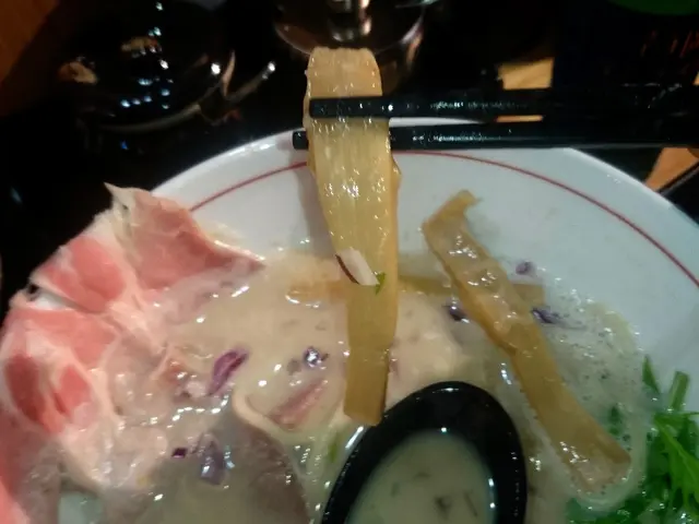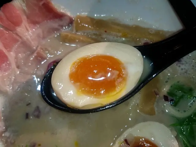 而麵質的情況也不見得十分理想,因為沒有硬度選擇,故我雖跟侍應特別提醒要超硬。然而在約50秒的烹煮之後,麵的超硬程度也不見得特別標青。口感雖然夠彈牙,掛湯力和蛋味則一般,加上更是吃到仍有少許的鹼水味。整體而言同樣不太理想。