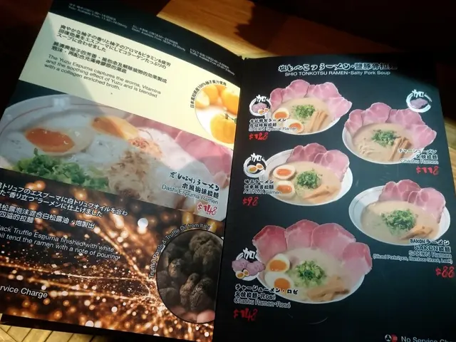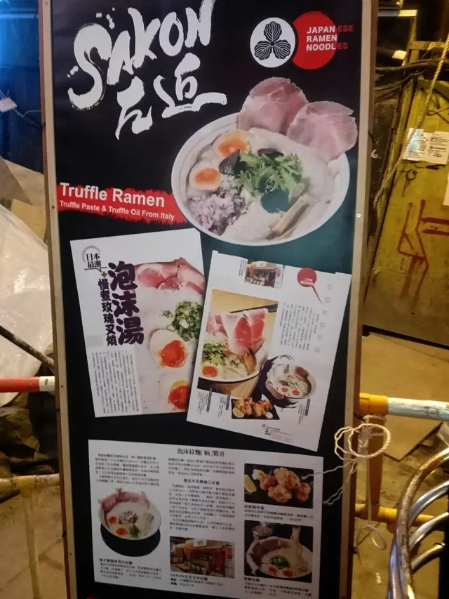 Menu主打鹽豚骨湯和煙燻玫瑰叉燒的拉麵,還有招牌泡沫拉麵;此外小食只有兩種選擇:炸雞和餃子;加上清一色的日本飲料。不過收費來說其實有點貴,拉麵最平由$88開始,而招牌泡沫拉麵更要$148一碗,同區內的拉麵店,應該數它價錢最為偏高。
