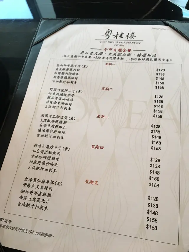 午餐每天不同價錢$128-$168