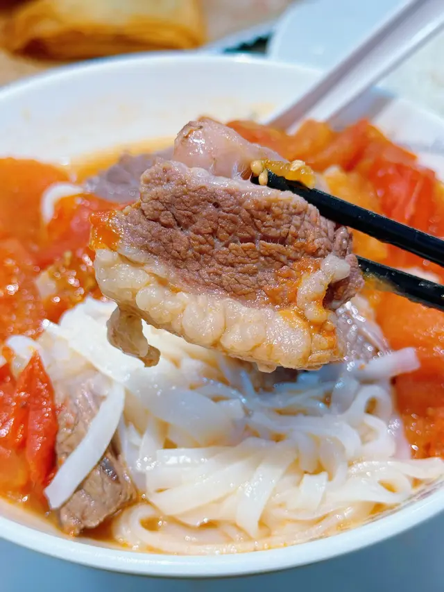 鮮蕃茄牛腩河粉,絕對係連湯都要飲埋,因為佢好似生滾湯咁,真係用新鮮蕃茄滾湯,而牛腩係用新鮮牛,入口即化唔死實,絕對冇渣,呢個價錢唔係用冰鮮牛已經超讚👍🏻