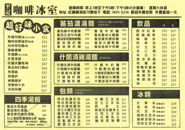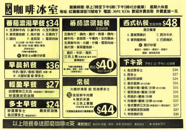 而其他時段,餐廳仲有啲咩食物供應?兩頁外賣紙貼埋出嚟就一眼睇晒。
