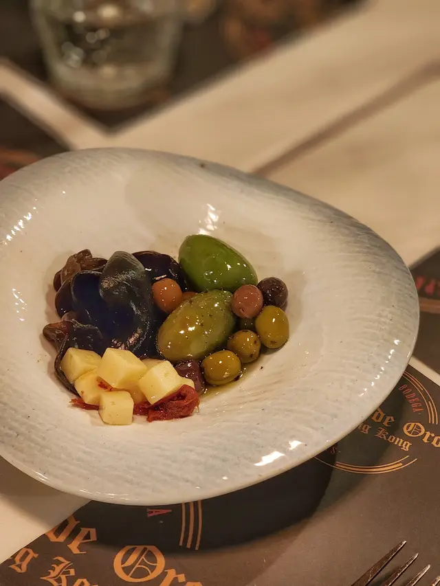 先送來的大、小橄欖、芝士粒、Sundred Tomato,不單沒有過鹹,質感和味道也一流。原來全是自家浸製,還加入東方元素的木耳,令人眼前一亮,大抵是西班牙人的老闆來港多年,也認識到木耳的益處!