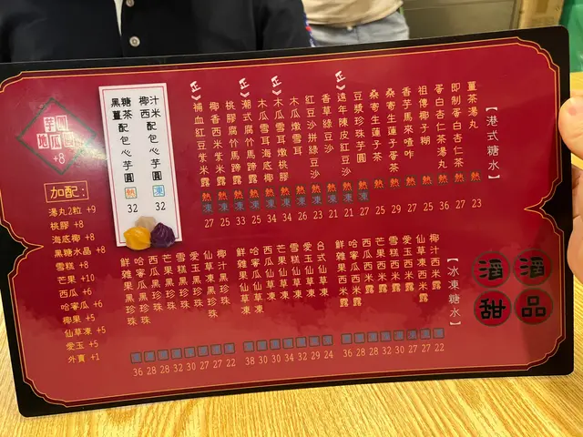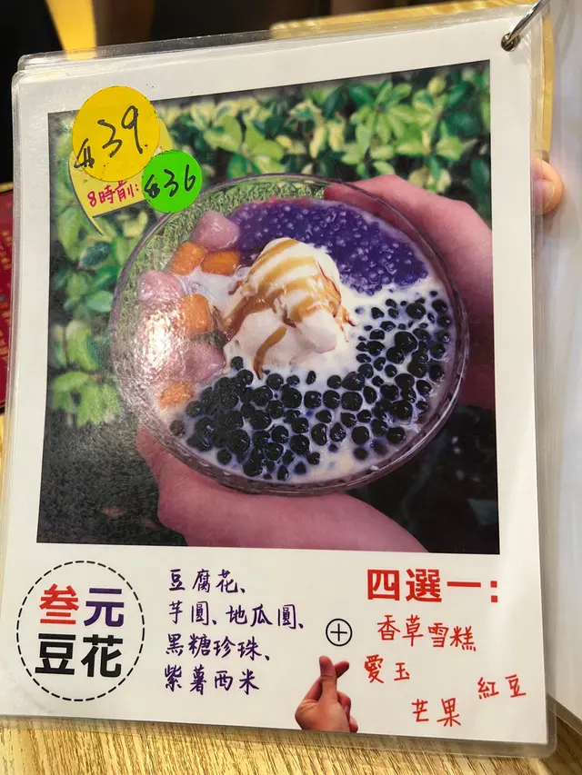 豆腐花、芋圓、地瓜圓、黑糖珍珠