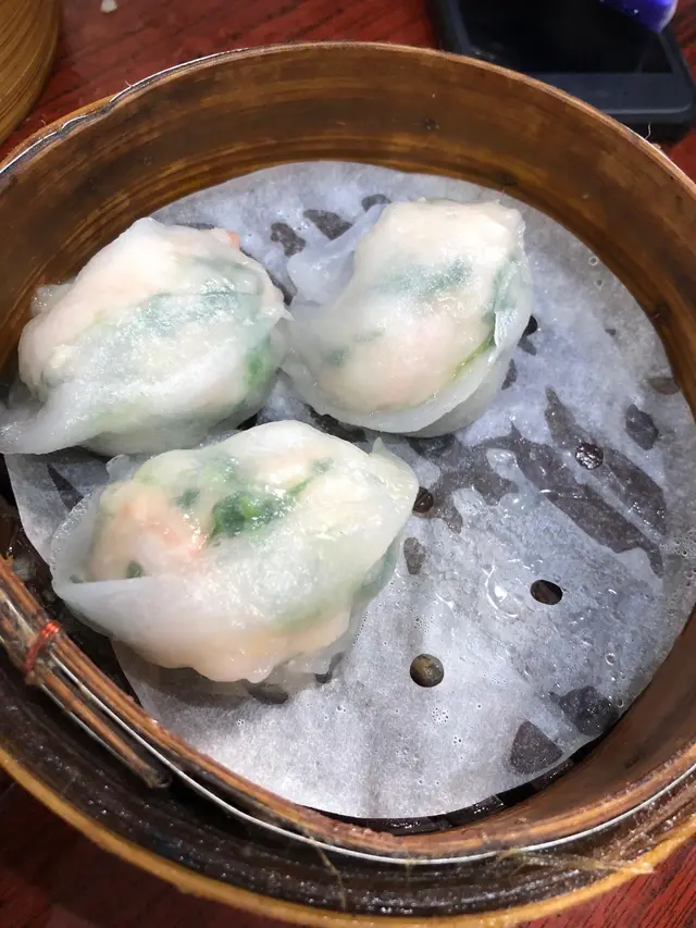 燒賣一籠4粒,皮好滑好軟、蝦好爽,夾住D豆苗無咁膩,成個配搭好match!