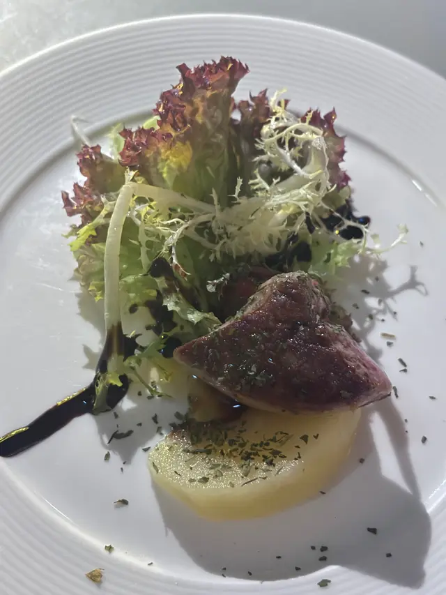 Starter :香煎鵝肝配蘋果及黑醋燒汁 - 佢又鵝肝肥而不你,再配合埋少少嘅蔬菜,兩隻配合得天衣無縫