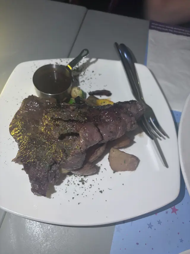 Mains:厚切紐西蘭牛西冷扒(10安士) 配青胡椒汁 - 個牛扒大件,有着滿滿嘅肉汁