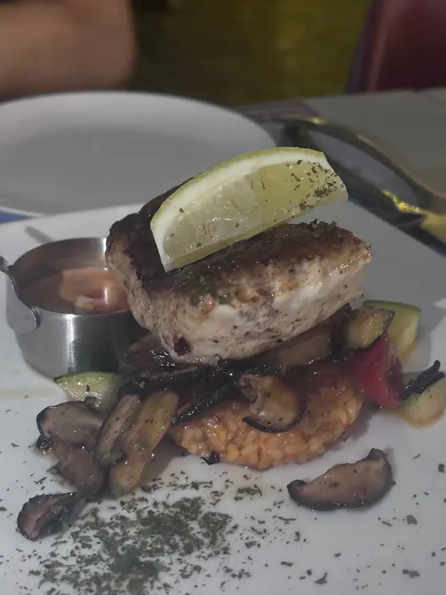 Mains :香煎石斑魚柳配意大利米餅及蕃茄忌廉汁 - 個意大利米餅足夠兩個人食,魚柳煎得啱啱好,香嫩肉滑