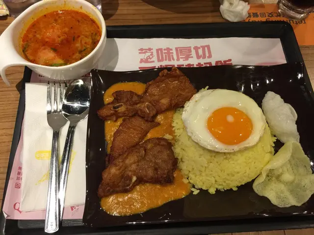 豬扒咸到不得了,椰汁飯完全無椰汁味,得少少黃其地色,唔似雞油,我估係黃薑粉。