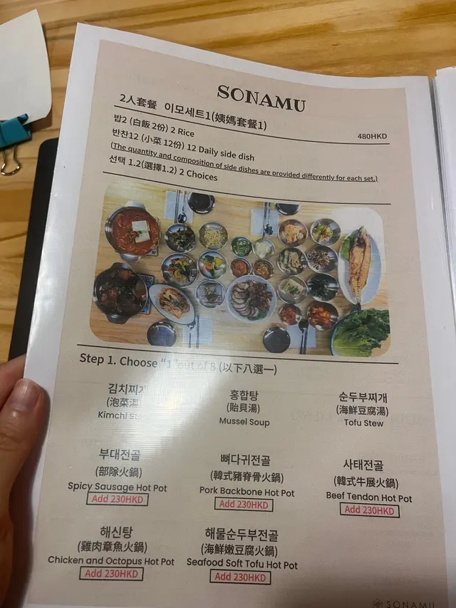 如果想食正宗又優質嘅韓國菜,記得揀位於尖沙咀嘅SONAMU 韓式餐廳,唔止環境乾凈闊落,仲有多款韓式料理可以揀。今次揀咗個二人姨媽套餐($600) ,有十二道韓式經典小菜,一個鍋,同三道主菜。