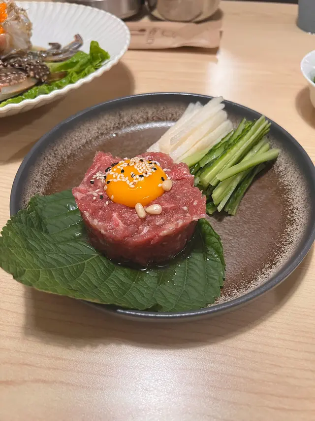 牛肉醃得好香,撈埋蛋黃享用,鮮味又嫩滑。仲有雪梨同埋青瓜可以夾埋一齊食,有唔同嘅口感但係唔會搶咗牛肉嘅鮮味。