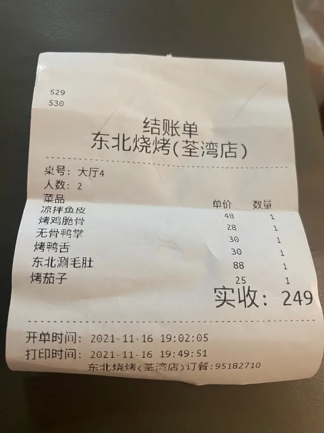 貴且很一般的燒烤.大失所望 uniquesuki等級42021-11-16171 瀏覽 關注 無意中發現一間新開的燒烤.東北燒烤.品種相比香港燒烤,更偏向北方燒烤.因為吃了下午茶,晚上決定吃點燒烤過下口癮.點了無骨鴨掌(口感比較硬,牙齒唔好慎點雞脆骨(雞軟骨)size非常小,很失望.烤鴨舌 一串2條鴨舌 一份兩串 (沒有什麼特別)麻辣魚皮 (勉強過得去,屬於泡椒口味)烤茄子,算正常(一開始過生,重新加工)最後不得不說東北刷毛肚(一共10串)份量少,非常硬,好塞牙!!!裡面配有3條百頁結,3小朵 黑木耳… 非常失望最後買單249 … 份量由圖可見!見到廚師在廚房沒有帶口罩(口罩拉低)以上食評乃用戶個人意見 , 並不代表OpenRice之觀點。讚好分享貴且很一般的燒烤.大失所望 東北燒烤 (富華街) https://s.openrice.com/QrbT0Hnn100檢舉 張貼 評分2味道4環境4服務2衛生1抵食用餐途徑堂食