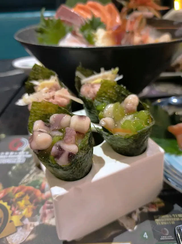 芥辣八爪魚手卷份量適中不會太大舊,食完仲可以食到其他嘢😋