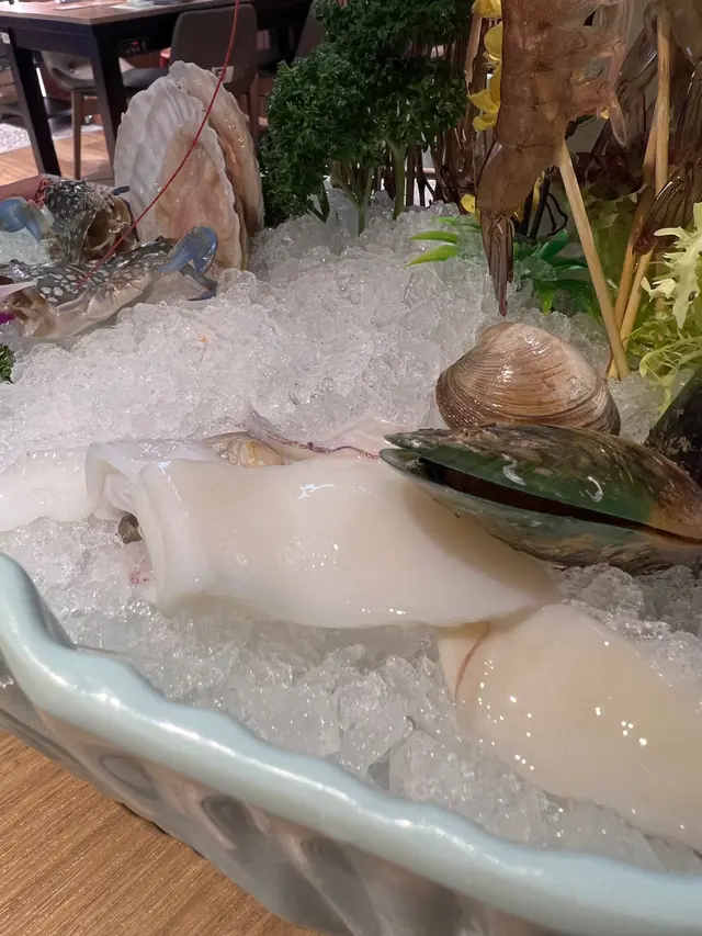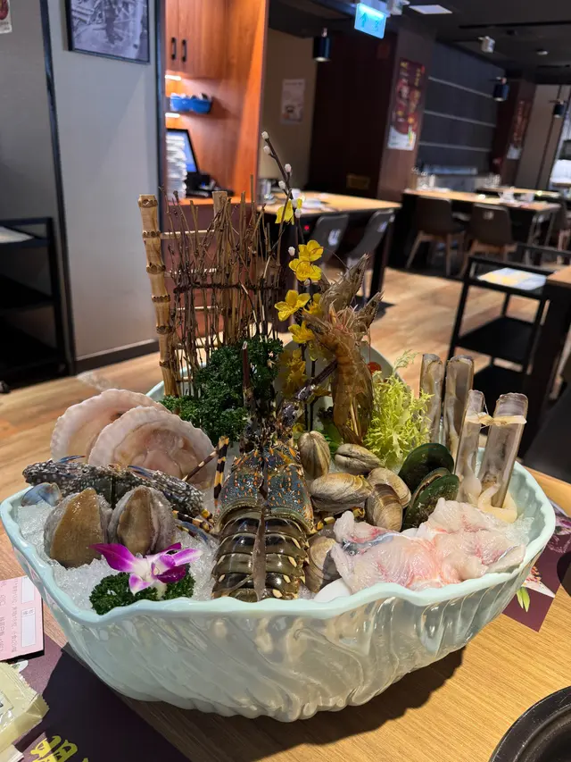 雖然有心裡準備,但這一盆剛上桌,還是讓我們WoW了一聲,有點日料店的感覺。各種海鮮,鮑魚呀,蝦呀,還在蠕動😋新鮮得不能再新鮮了。