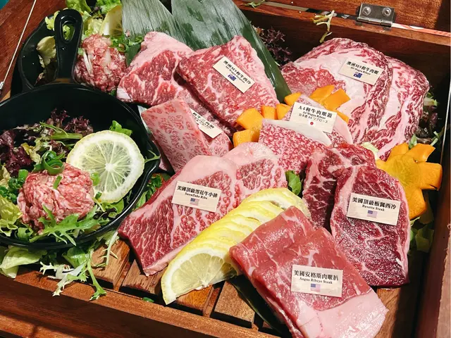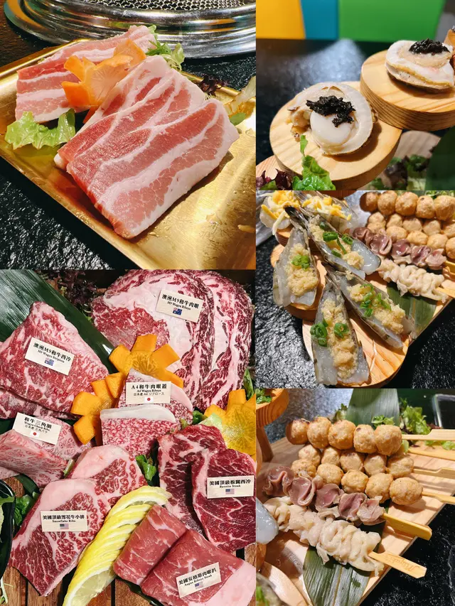 燒肉:巨多款式既燒肉,差吾多食盡牛每個部位甘濟!每款燒肉顔色鮮艷,牛脂分佈平均。燒肉燒後油脂分佈幾多,吾會太過乾,再配合餐廳提供既燒汁食,味道岩岩好啊!