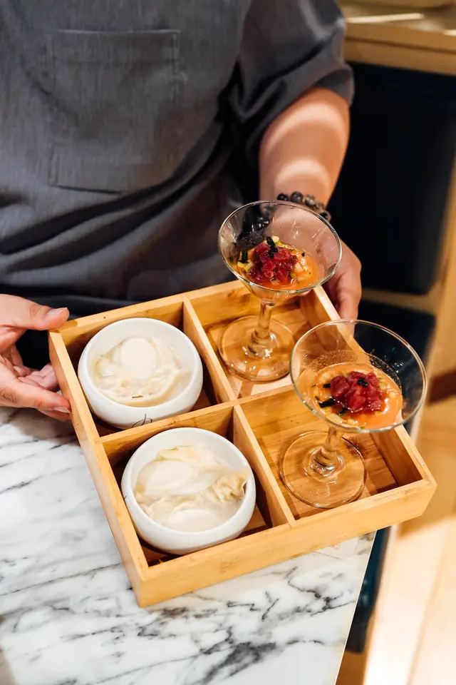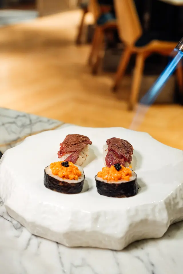 另外推薦席前以炙燒生牛肉壽司🍣、牛肉他他及海膽壽司。餐廳更提供多款傳統韓式料理,包括泡菜鍋、炸醬麵、玫瑰醬炒年糕、炒魷魚、水冷麵等,基本上平常見得到嘅韓式料理都有。仲有烤年糕片配芝士🧀煙煙韌韌都幾正。