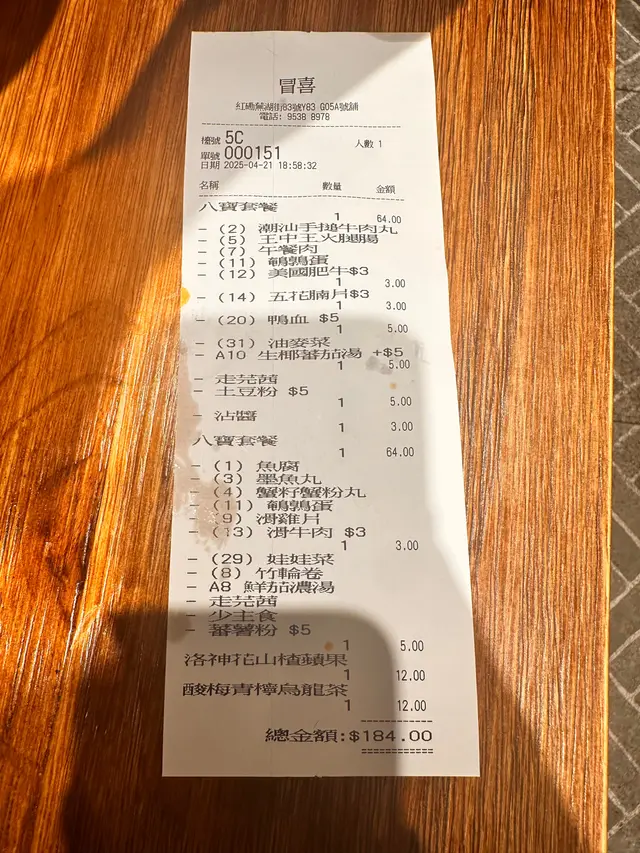 滑牛肉薄切嫩滑、無骨雞片涮30秒即熟,搭配懷舊火腿腸,肉食組合滿足不同口味。必試滑嫩鴨血、日式竹輪卷和火鍋必備鵪鶉蛋,新鮮時蔬吸盡湯底精華。