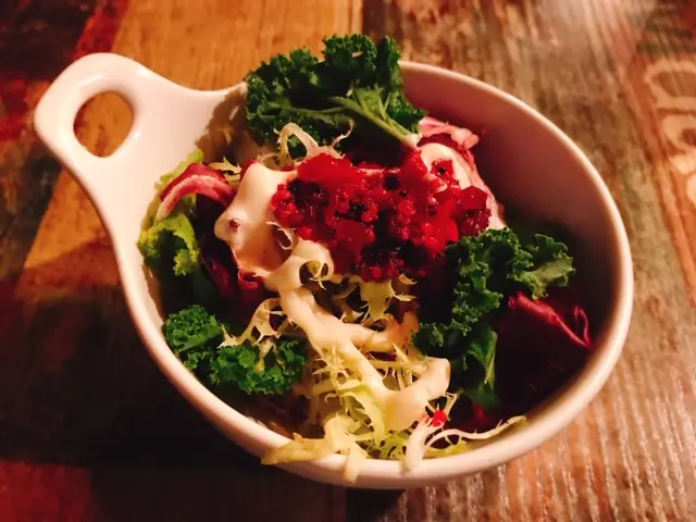 沙律內有多種不同種類的沙律菜,紅菜頭,火箭菜,羅馬菜加上秘製醬汁,甜甜地好開胃。
