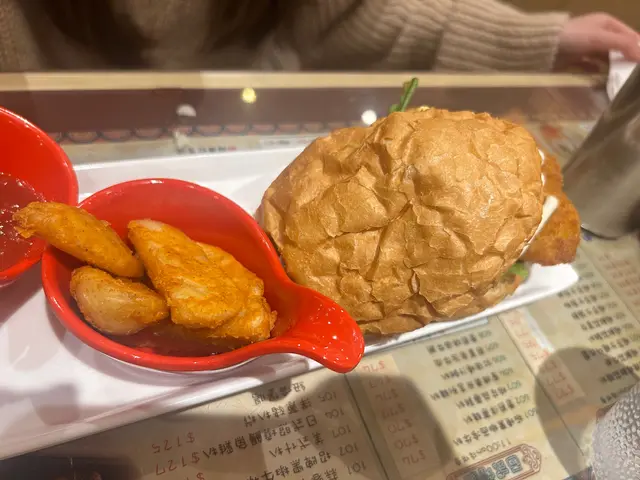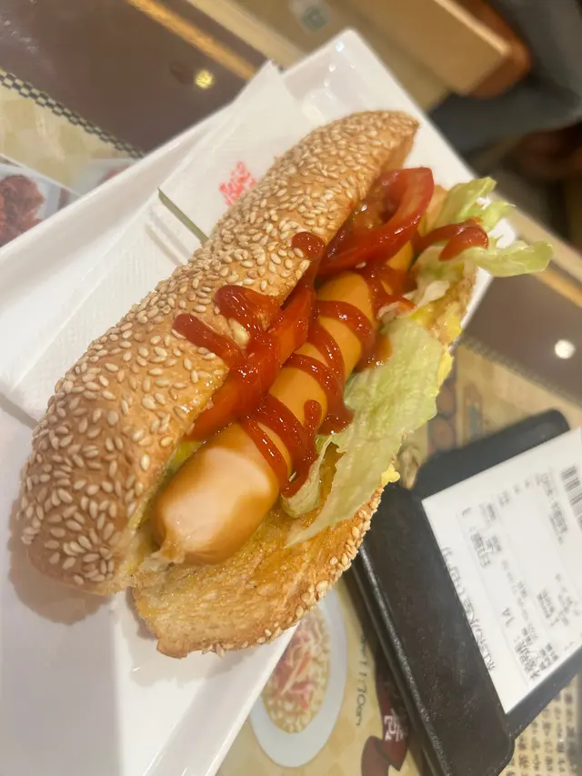 睇餐牌,選擇都幾多。叫咗個熱狗包、炸魚柳同埋杯凍紅茶。個熱狗包,麵包表面滿滿芝麻,咬落去外脆內軟。熱狗腸肉質紮實,咸香適中,搭配埋生菜同番茄,再加上酸酸甜甜嘅茄汁,口感層次好豐富。炸魚柳炸得金黃酥脆,用嘅應該係新鮮嘅魚肉,入面嫩滑,唔會有雪藏味,配上茄汁,真係好滋味。凍紅茶茶味濃郁,甜度啱啱好,唔似有啲地方甜到膩,飲落好解膩。