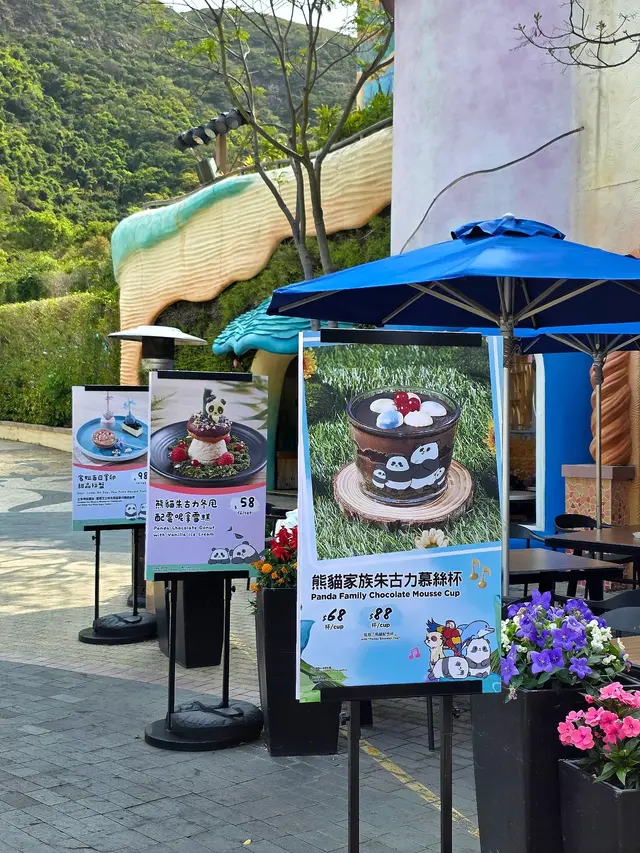 見過黑白六寶後,踏上從細到大、充滿「海洋公園」情意結的纜車,自製一個纜車河。玩了大半天,真的有點累!突然又看到熊貓出沒,不會吧?其實是「水都餅店」的熊貓甜品!因此,又成為我們坐下休息兼吃甜品的借口。