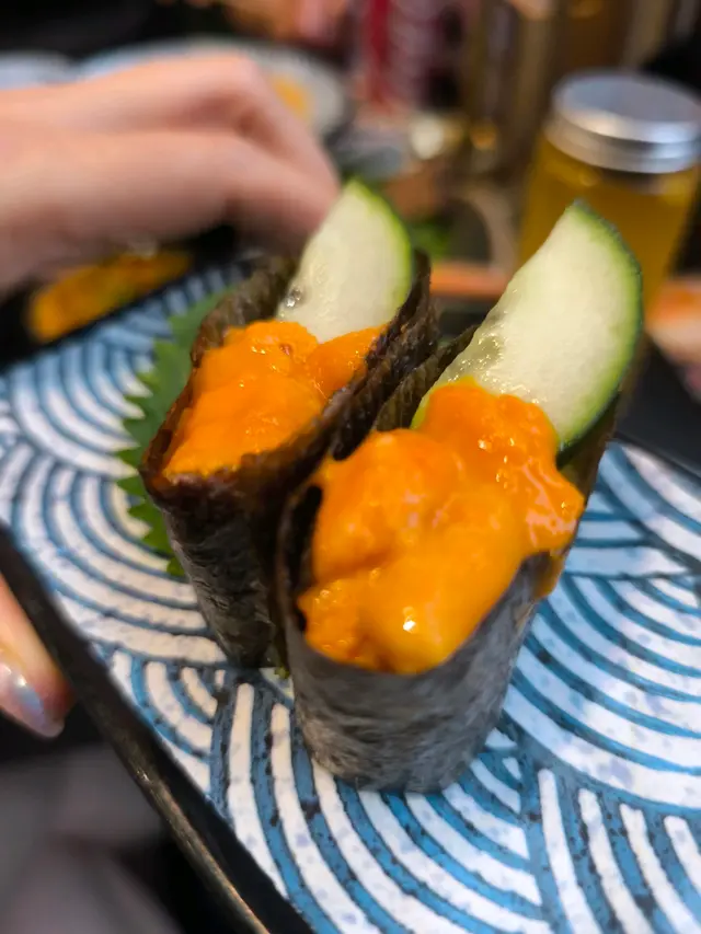 - 上枱時噴晒煙咁效果,幾有氣氛。三文魚、螺片、赤蝦都好新鮮,蝦都有三款,仲有海膽軍艦,細細見唔會太飽味道唔錯。