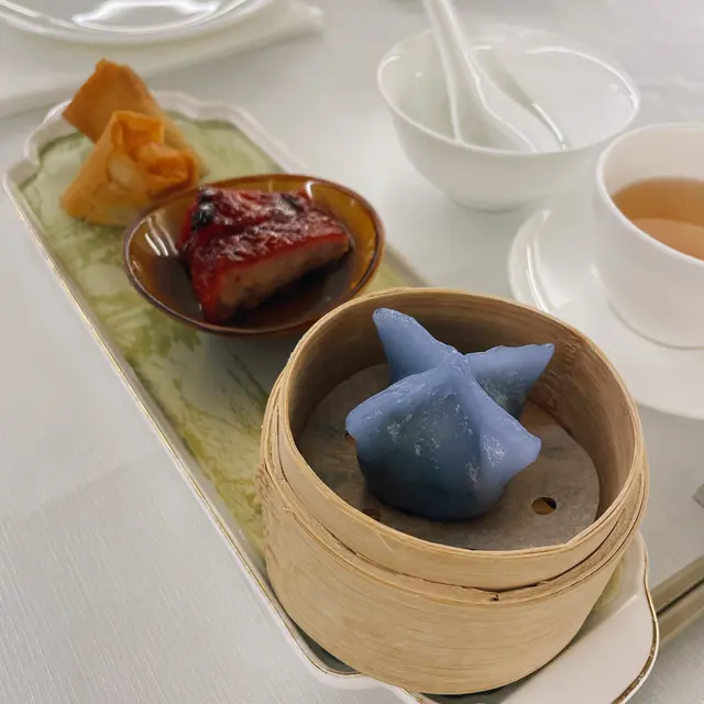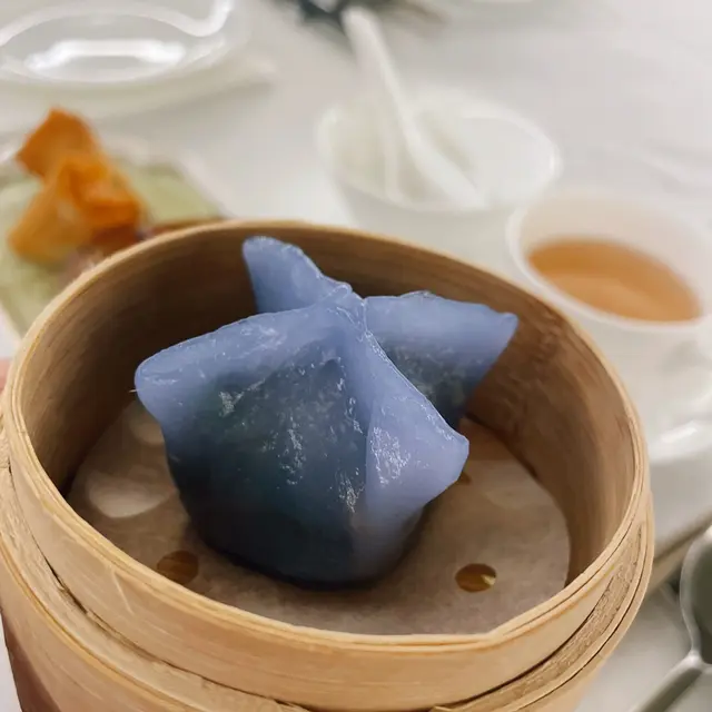 ▶️蝶豆花野菌粿 88分:晶瑩藍調吸睛,粿皮煙靭,野菌清香突出,油分輕,口感有層次。