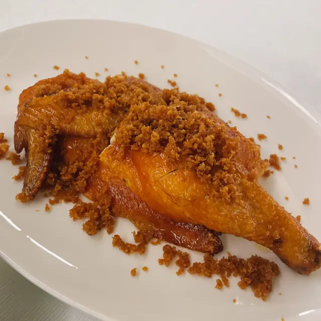 ▶️本地農場炸子雞(半隻) 91分:皮薄脆響口,雞香撲鼻,腿位多汁、胸位仍保濕潤,鹹香勻稱。