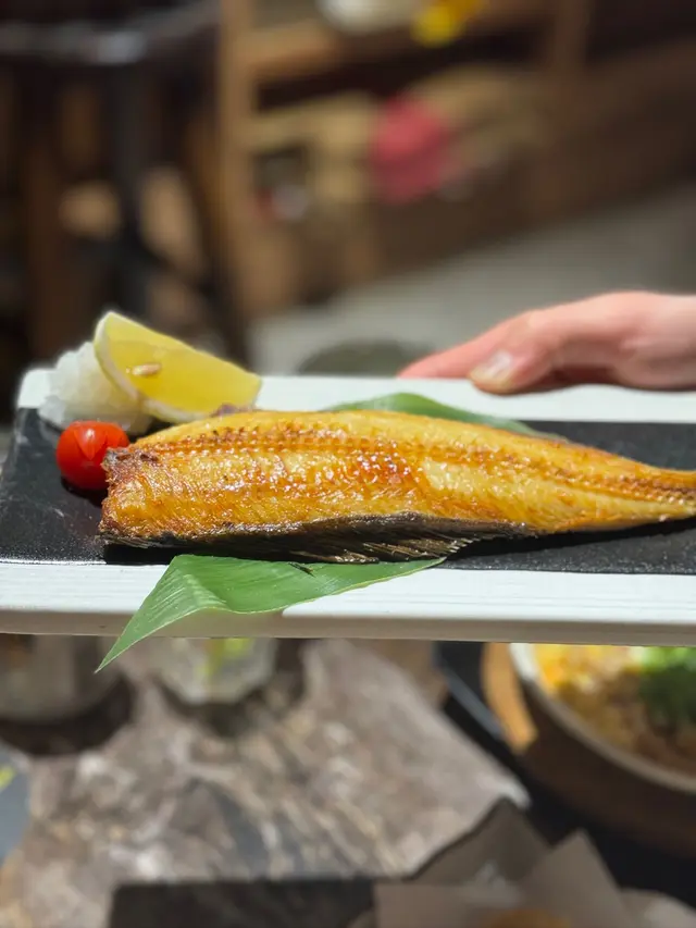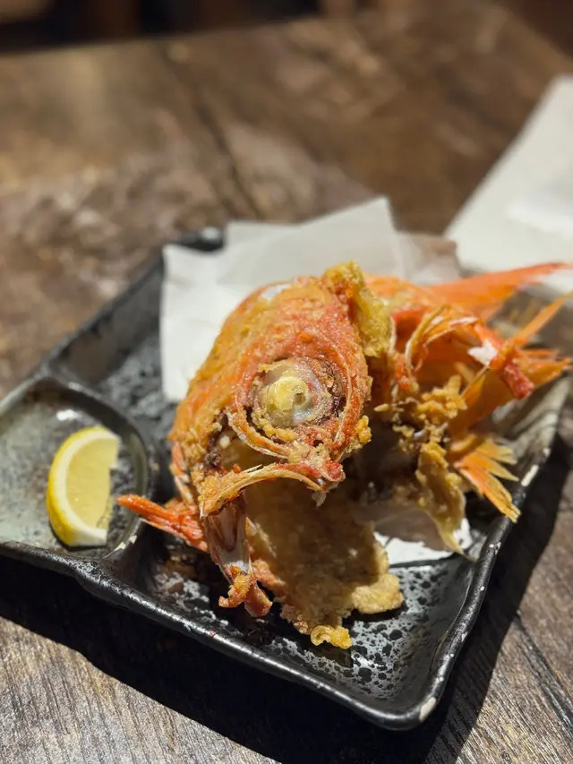 這道燒花魚丼是我在上戶酒場的新發現。花魚經過燒烤後,肉質變得更加鮮嫩多汁,散發出淡淡的煙燻香氣。花魚的鮮味與丼飯完美融合,魚骨的美味驚艷:金目鯛椒鹽魚骨的獨特饗宴